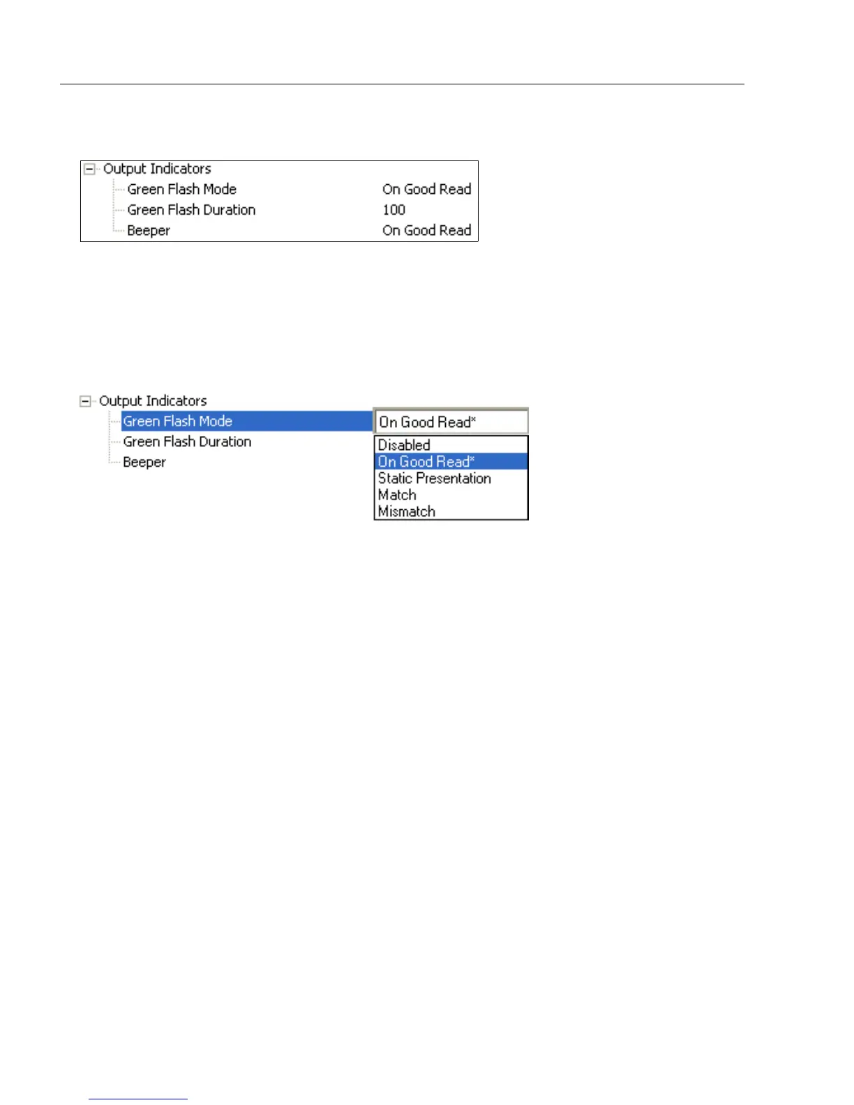 Green flash LEDs will flash when a good read condition is met or when Matchcode is