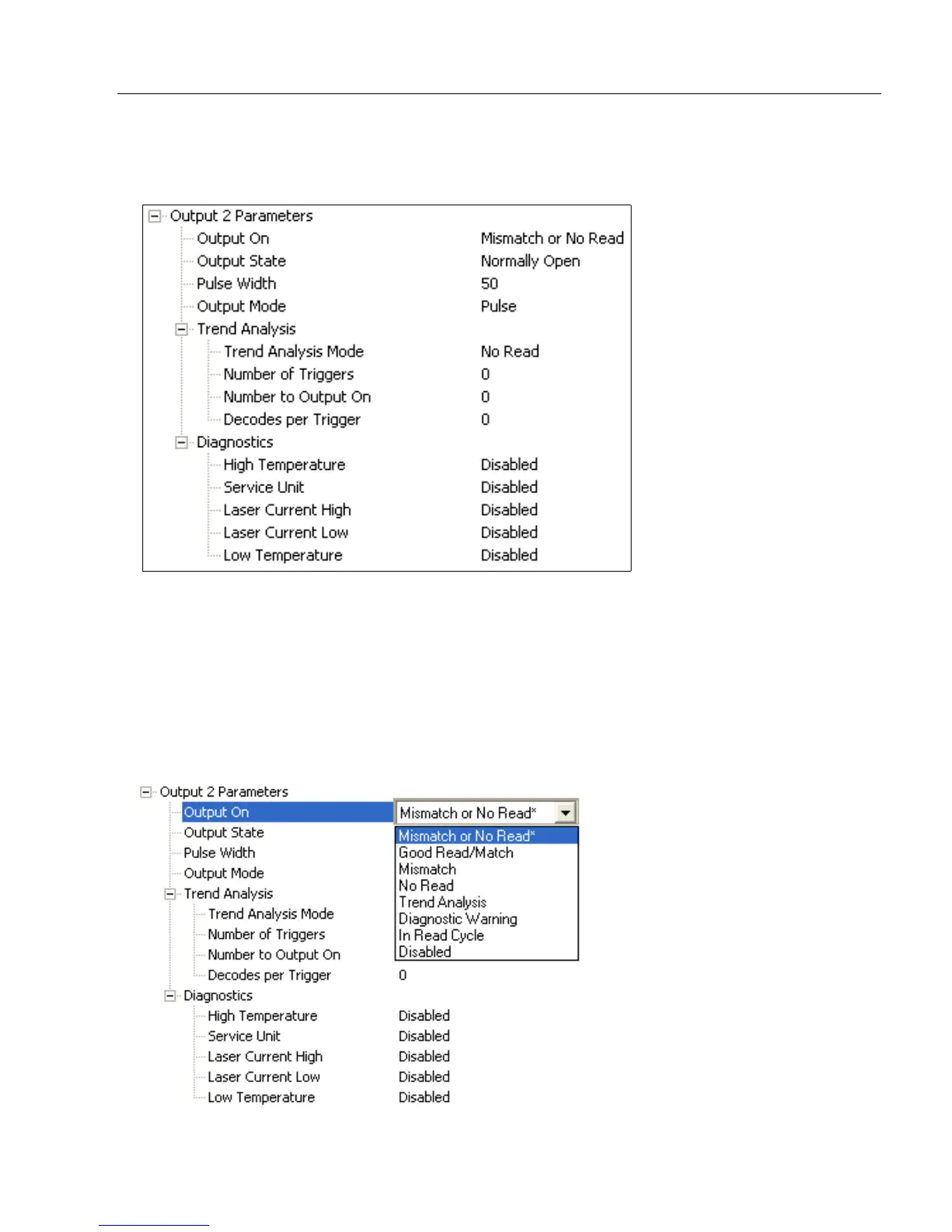 Note: If Output On is set to Match or Mismatch, a transition (switching) will not occur
