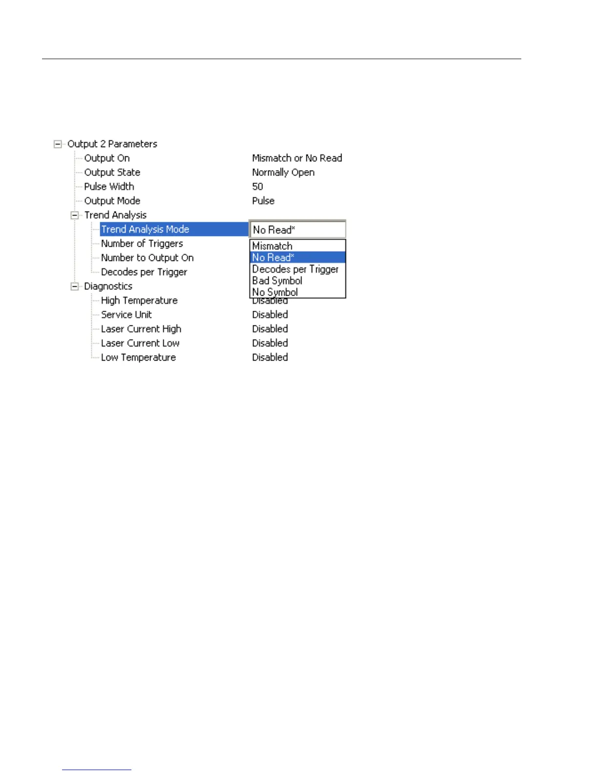 Sets the trend condition (Mismatch, No Read, Decodes per Trigger, Bad Symbol, or No