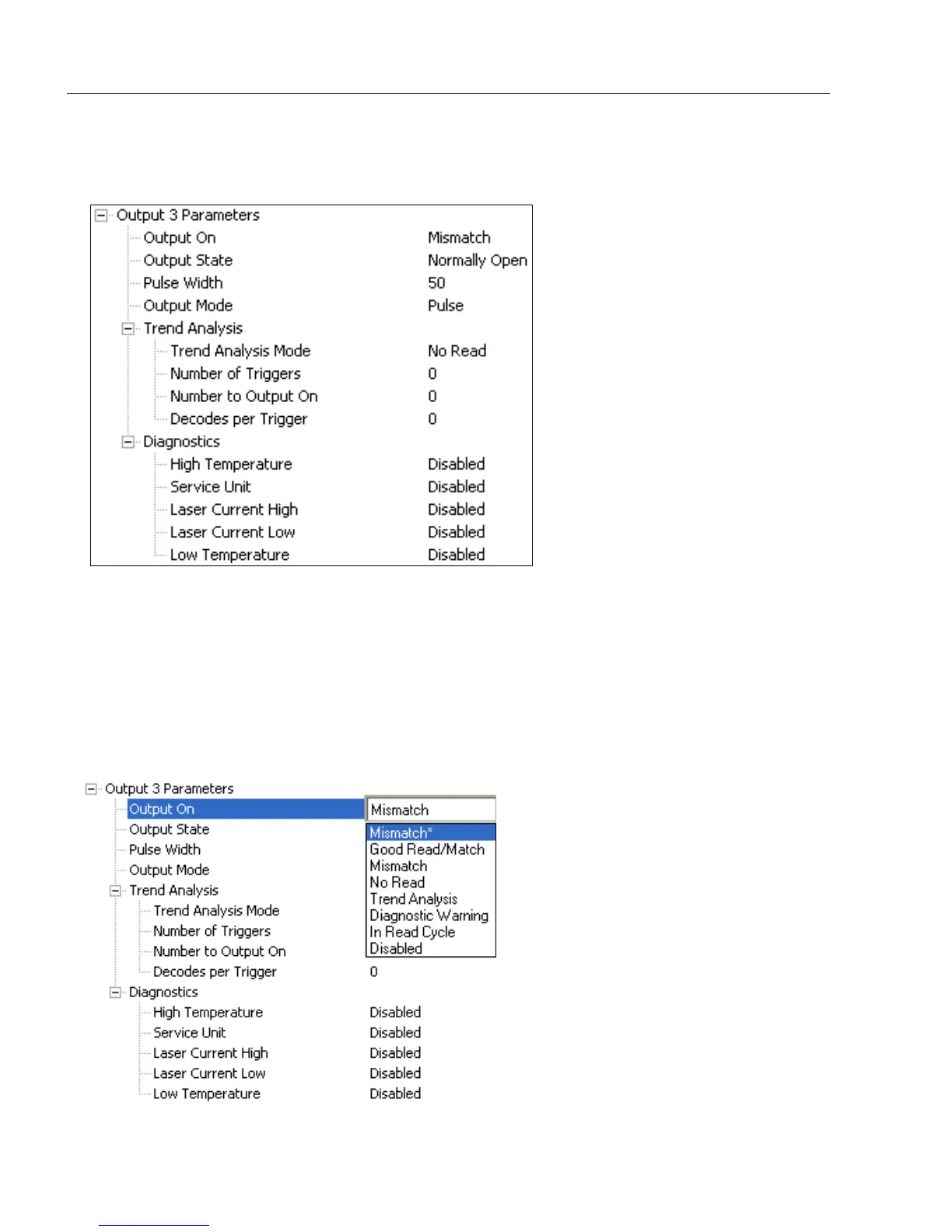 Note: If Output On is set to Match or Mismatch, a transition (switching) will not occur