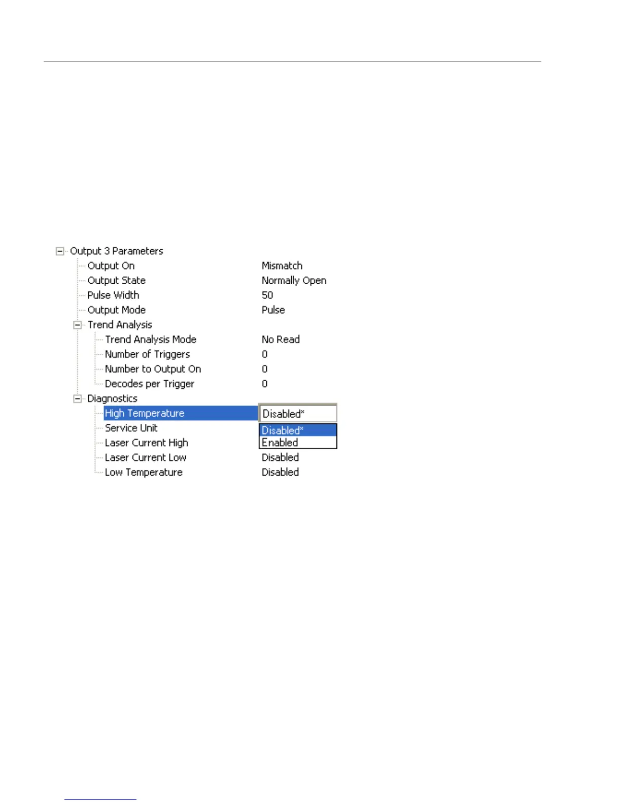 Note: Output On under Output 3 Parameters must be set to Diagnostic Warning for