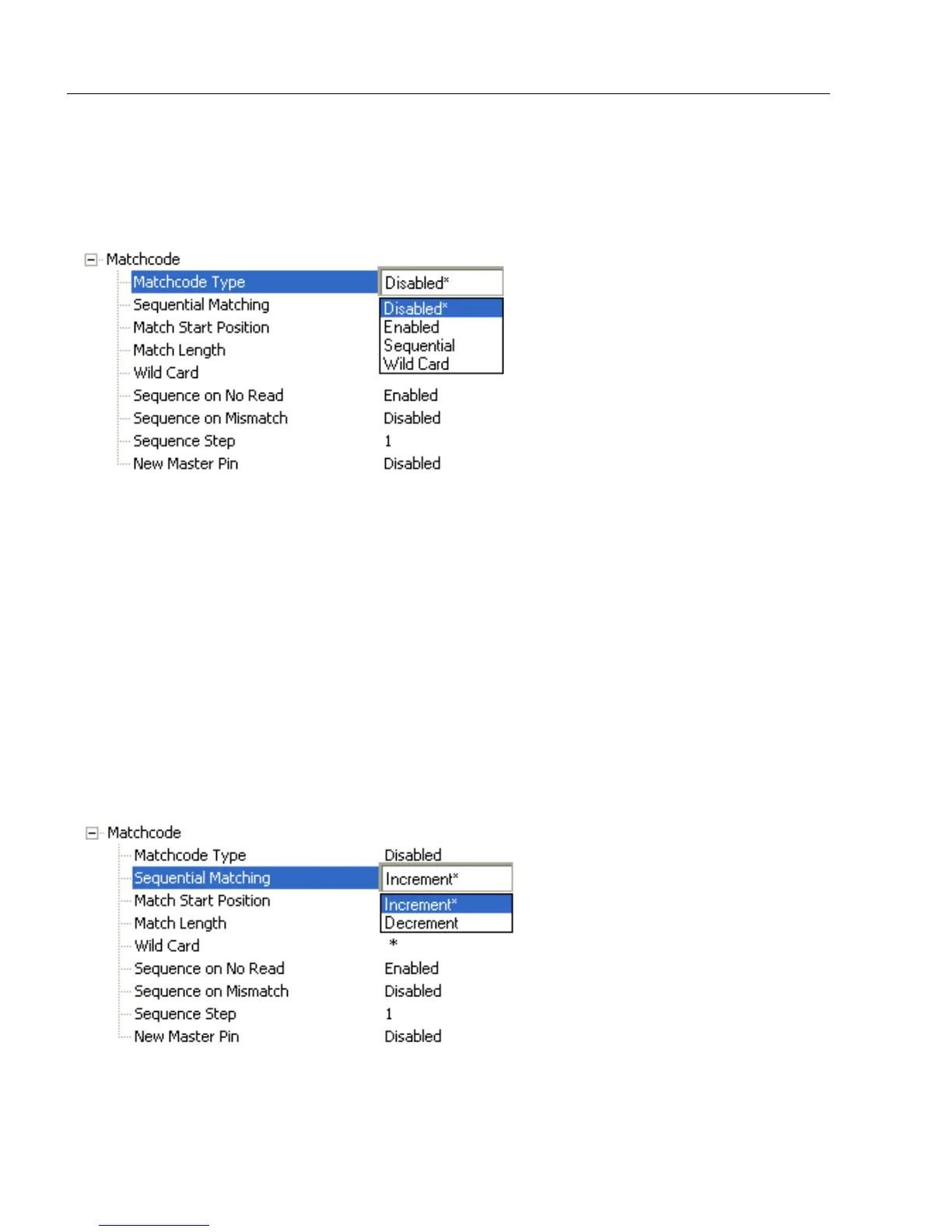 Note: If Matchcode Type is set to Sequential, the scanner will behave as if Number of