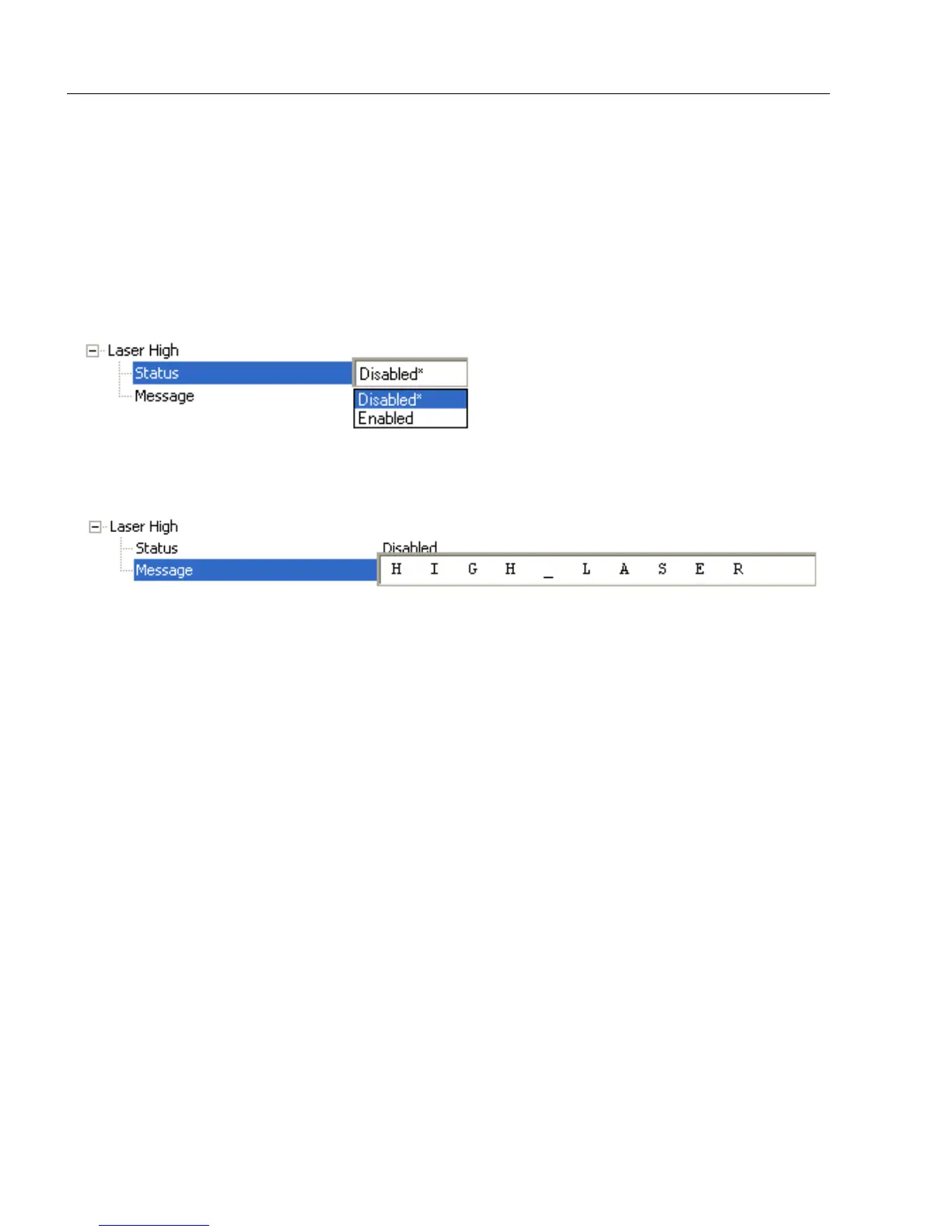 Allows the user to Enable or Disable the Laser High message.