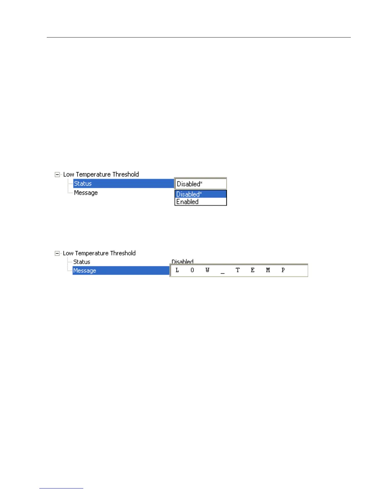 A message can be defined that will display when a user-set Low Temperature Threshold
