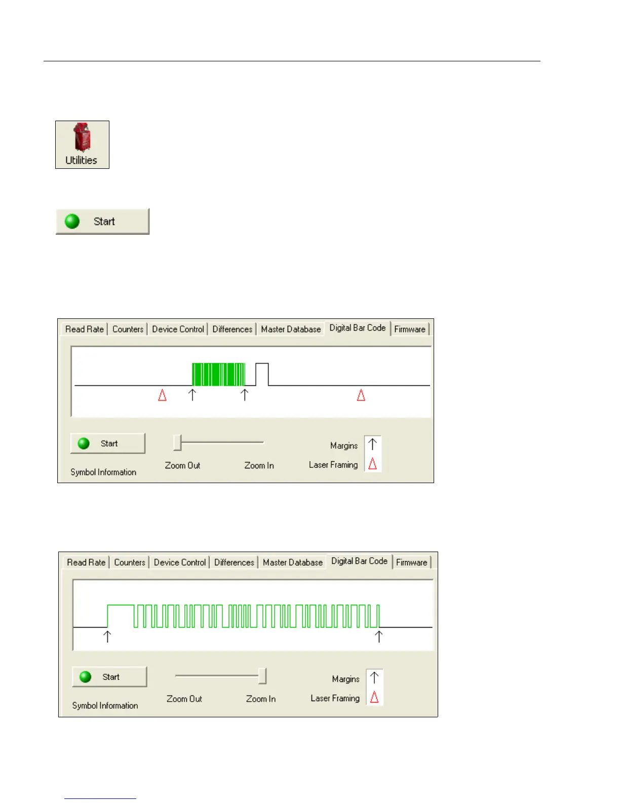 Click the Digital Bar Code tab and the Start button to view a digitized representation of