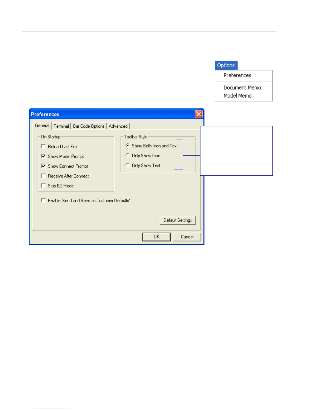 Preferences > General Tab