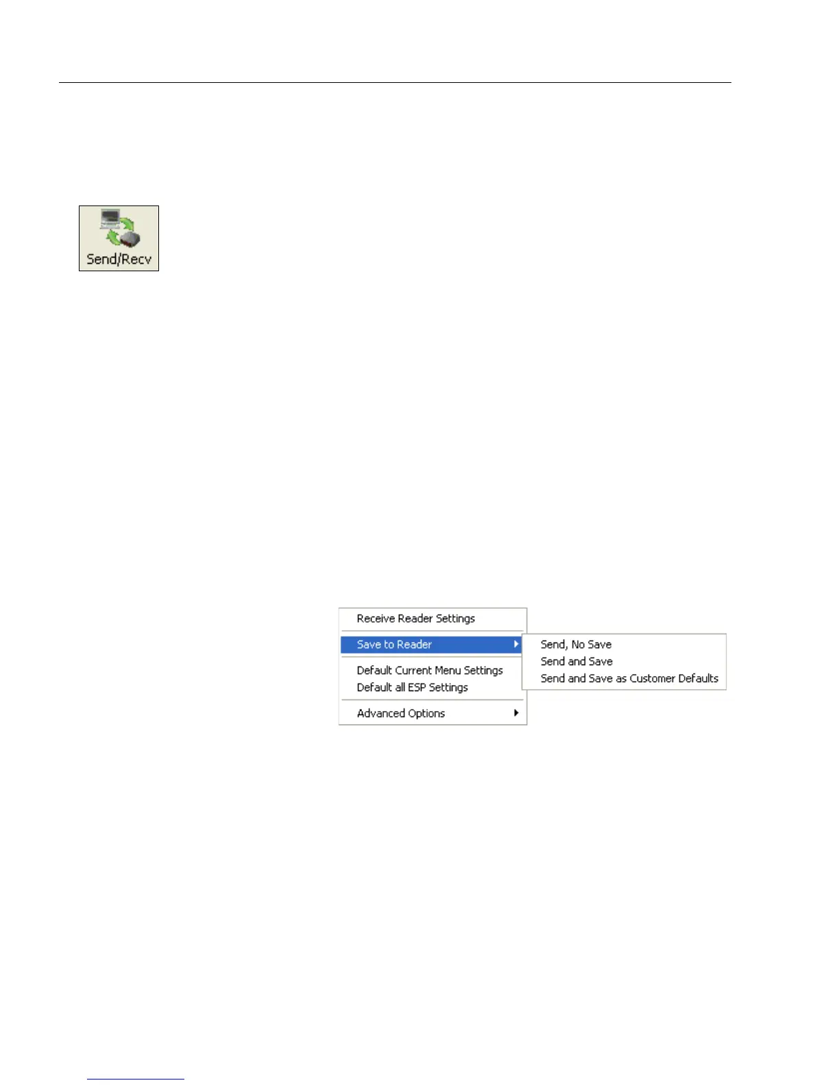 To access Receive, Save, and Default options, click the Send/Recv button. These