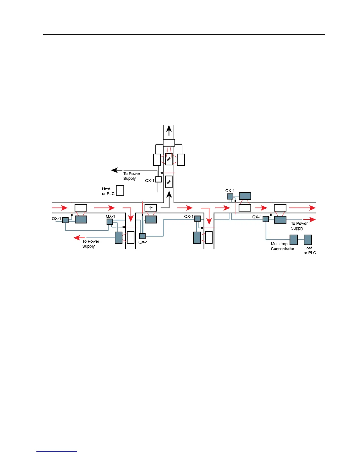 The highlighted areas below demonstrate how a multidrop network can be arranged.