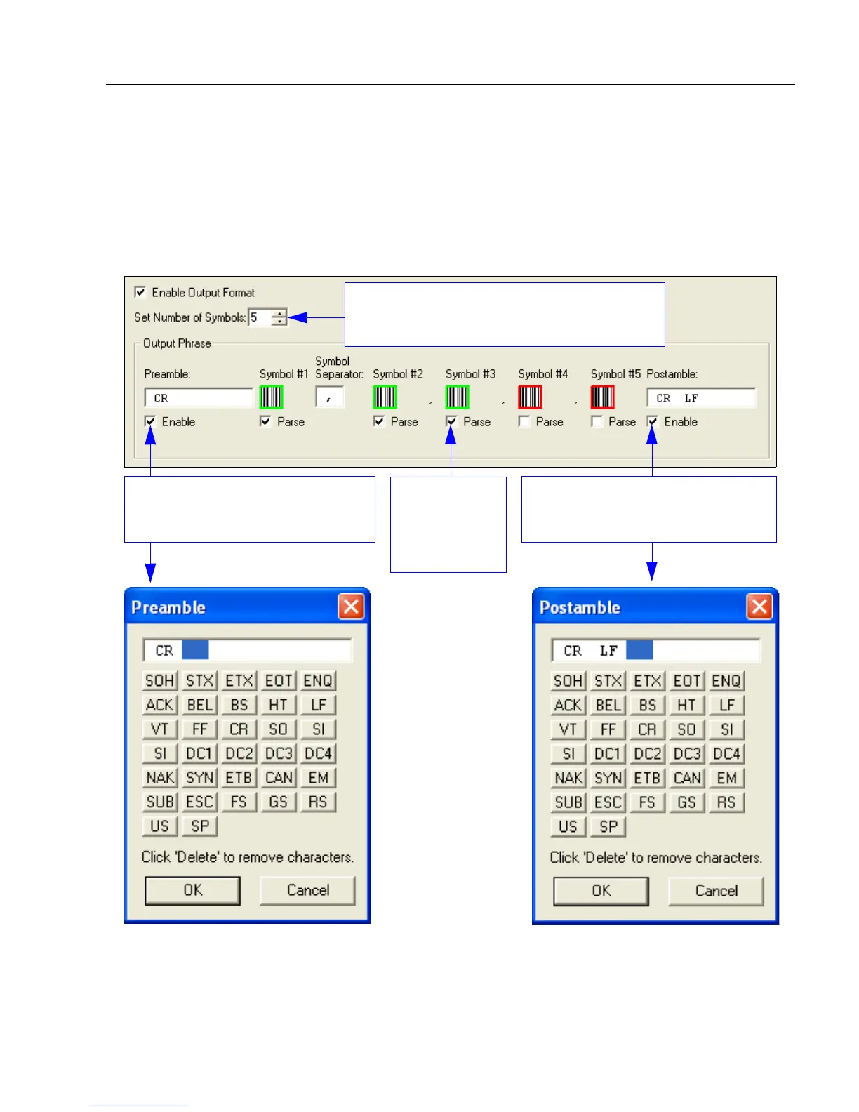 Output Phrase refers to the user-defined Preamble, selected symbols, and Postamble