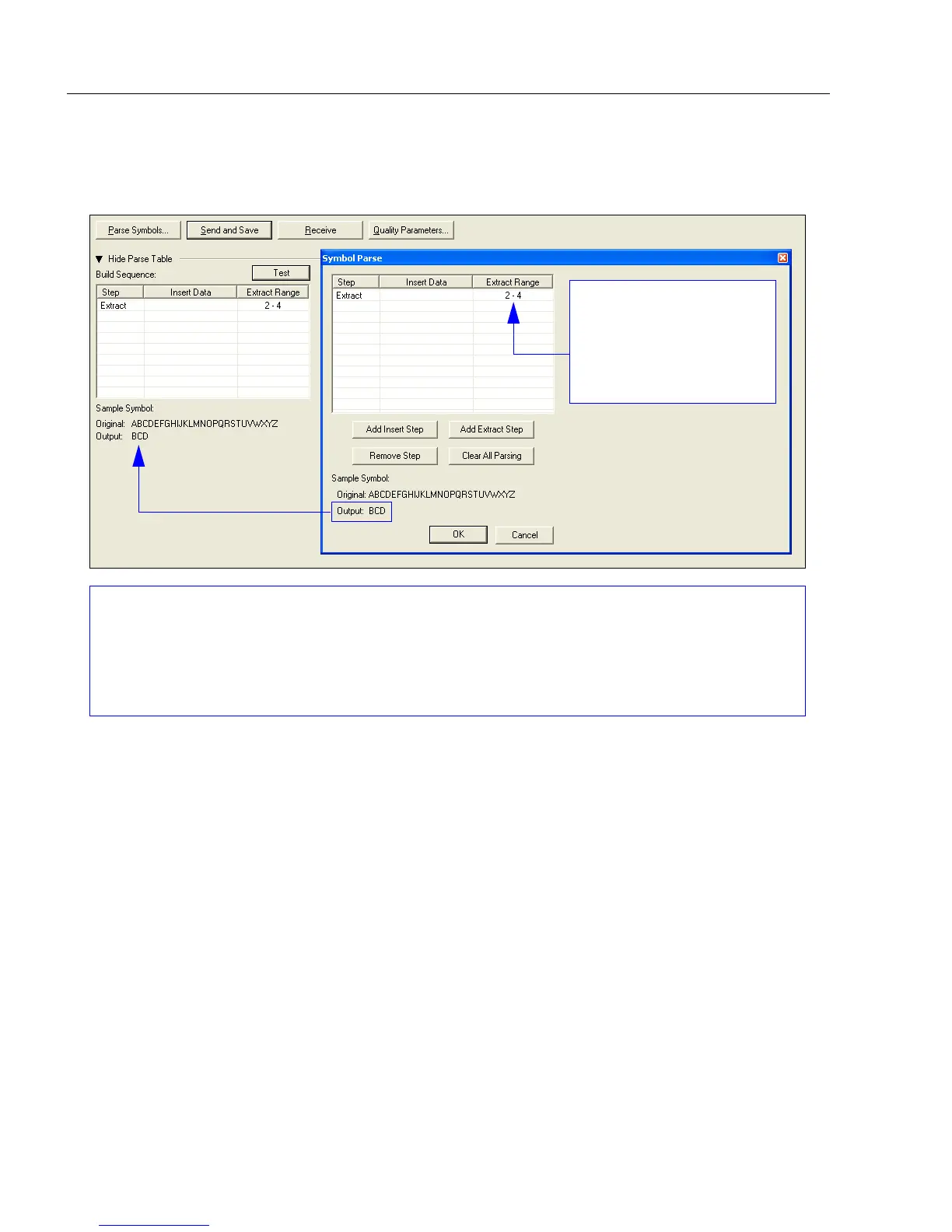 the selected extraction range is characters 2-4. The “Sample Symbol” example on the Symbol