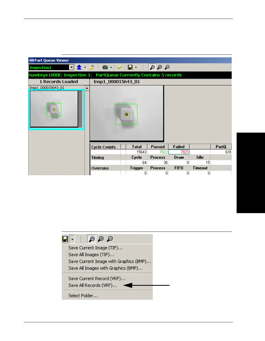 Use the following procedure to save all records from the Part Queue: