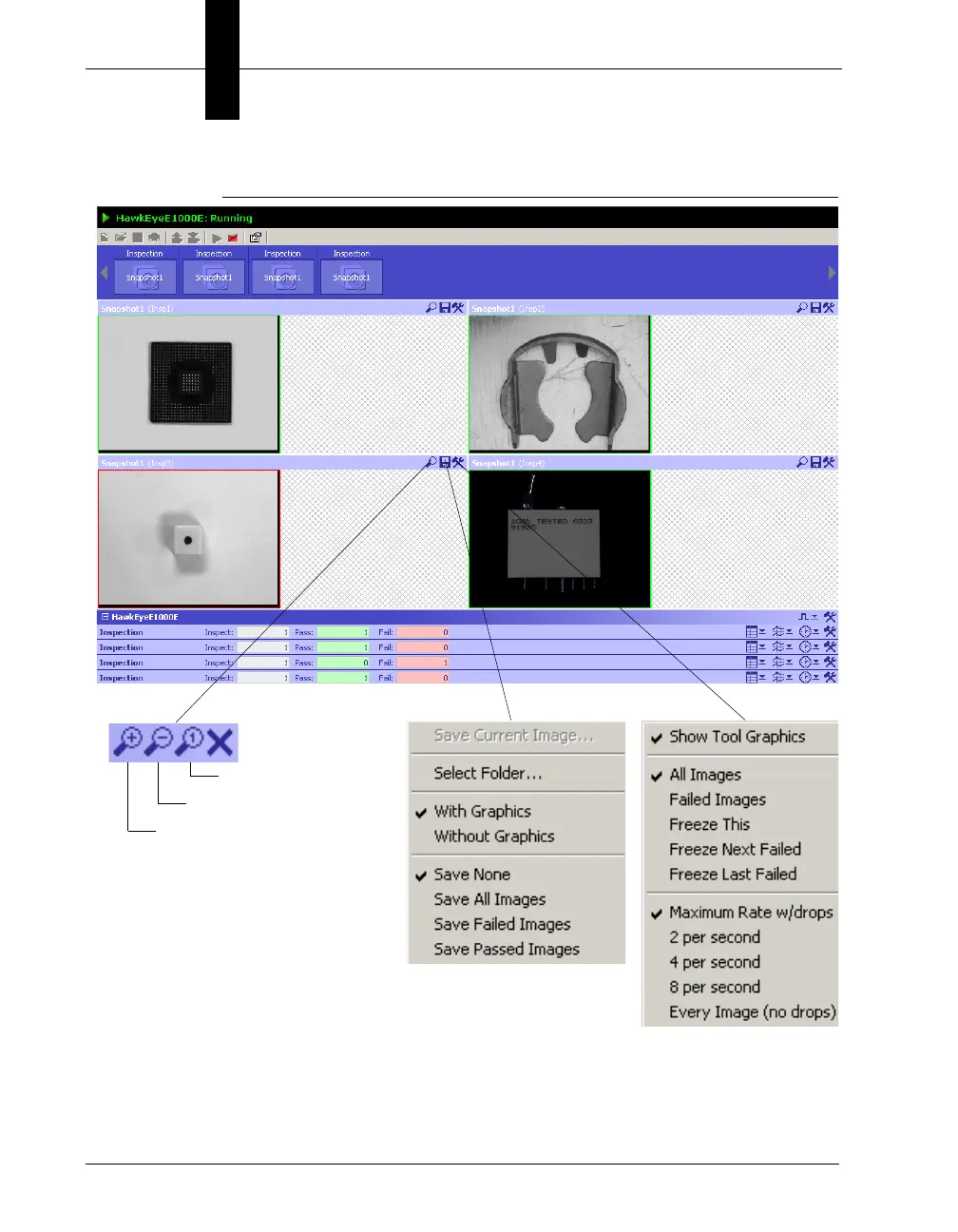 FIGURE 2–7. Four Snap Views, Zoom Buttons and Drop-Down Menus