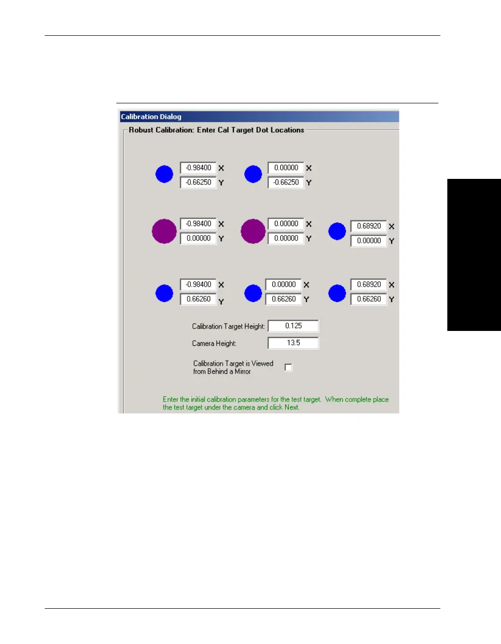 11. Enter the Calibration Dot locations for all targets.