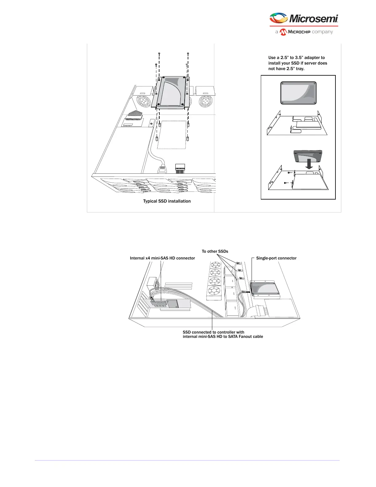 2. Use an internal mini-SAS or mini-SAS HD to SATA cable, as required, to attach the SSD(s) to the controller,