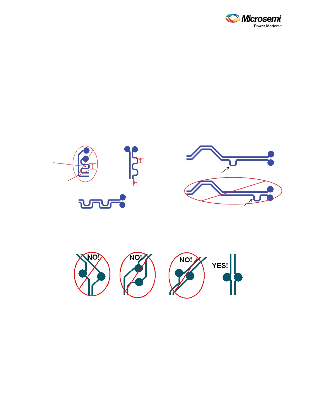 • The traces should be routed with tight length matching (skew) within the differential traces.