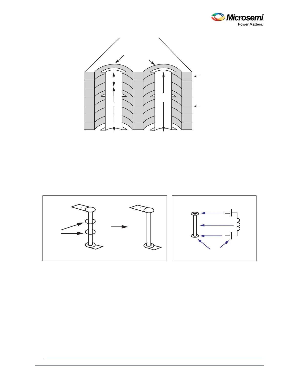 • The tight via to via pitch is practical to reduce the cross talk effect, as shown in the following figure.