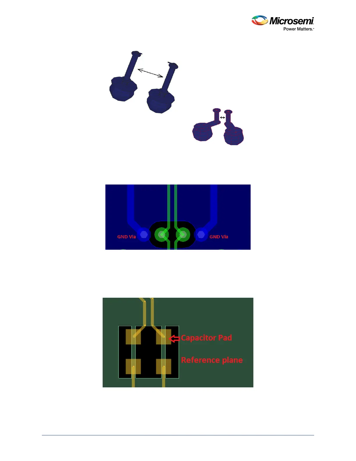 The plane underneath the pads of DC blocking capacitors should be removed (as shown in the following