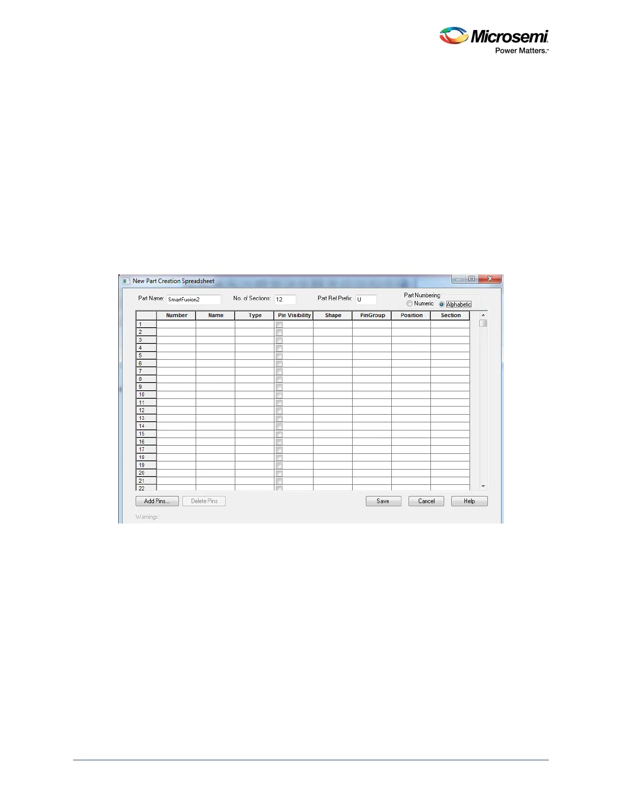 Figure 70 • New Part Creation Spreadsheet Dialog