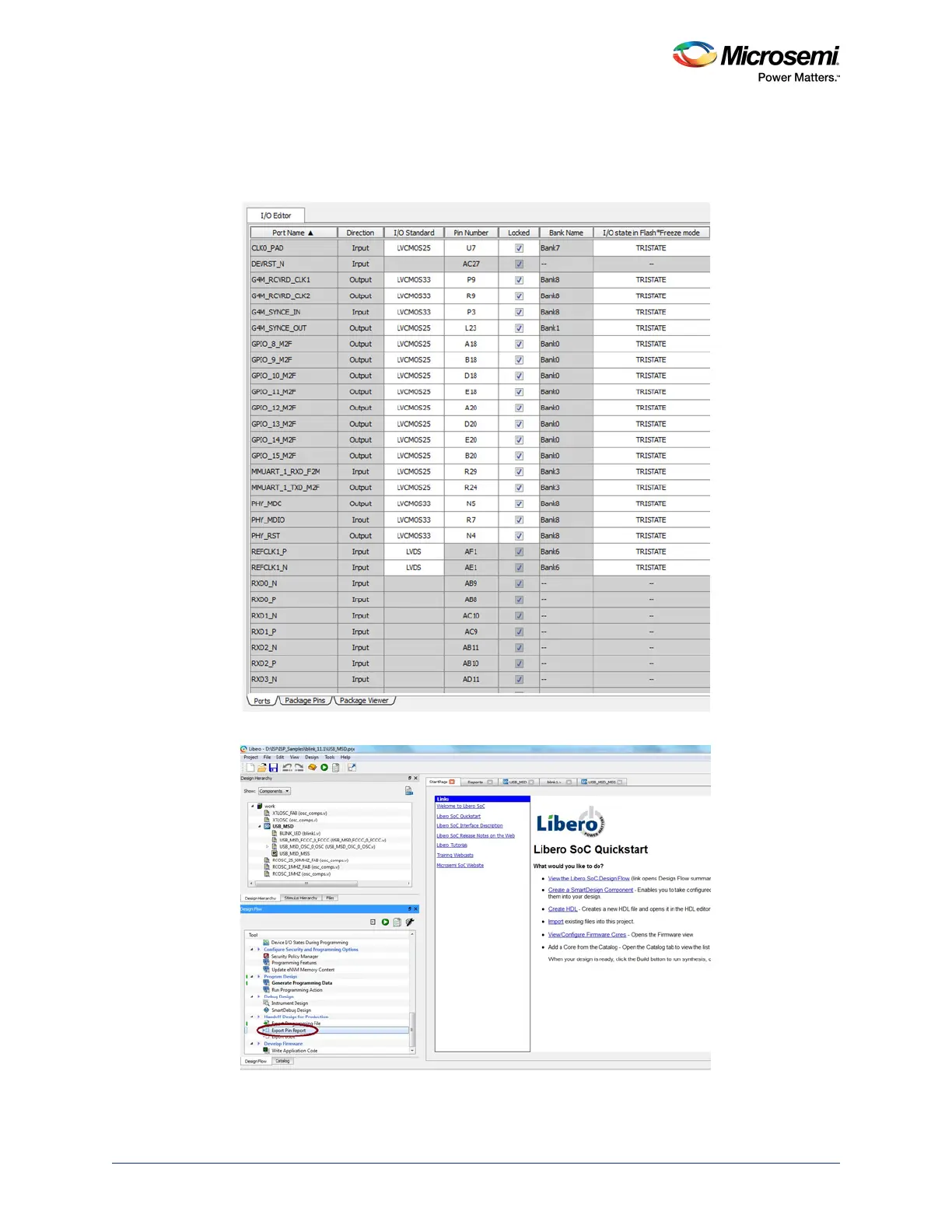 The pin names that are not modified follow the Microsemi pin naming convention.