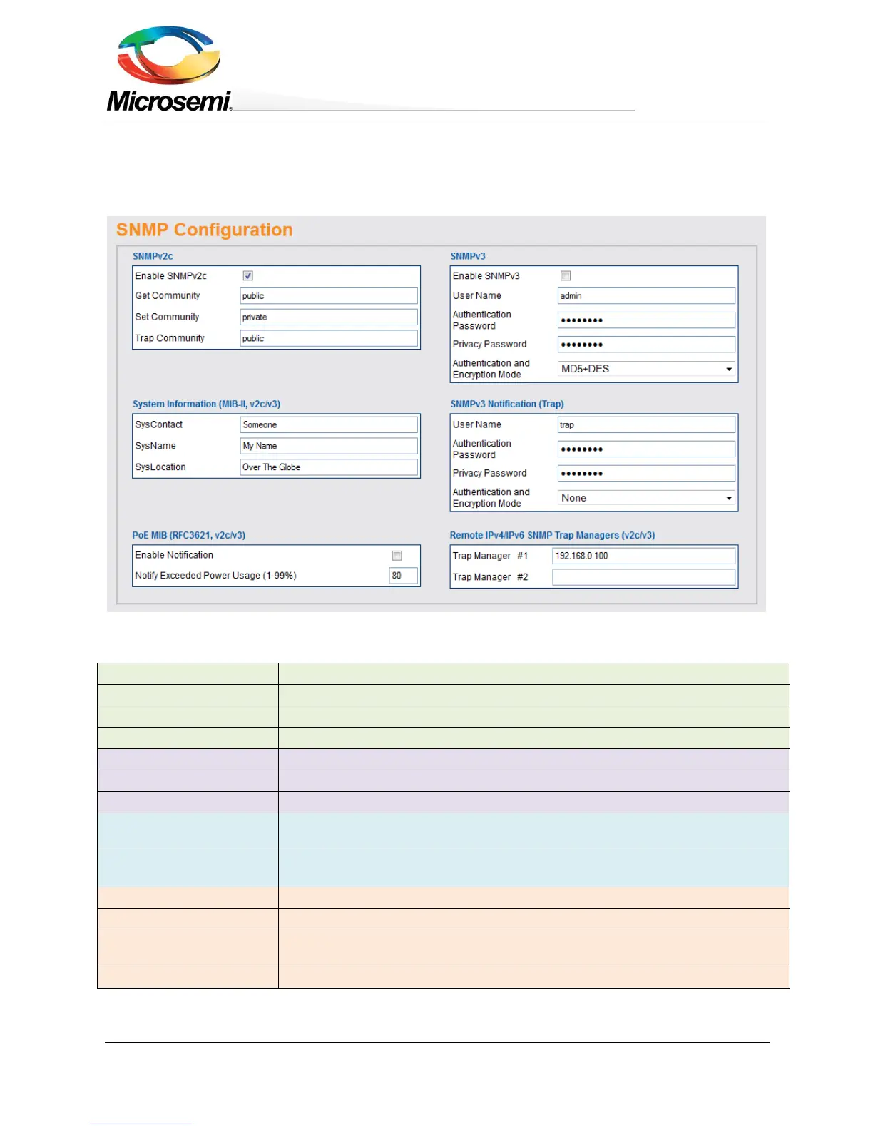 The blue title above each SNMP sub parameters group should guide the user if the parameters apply to