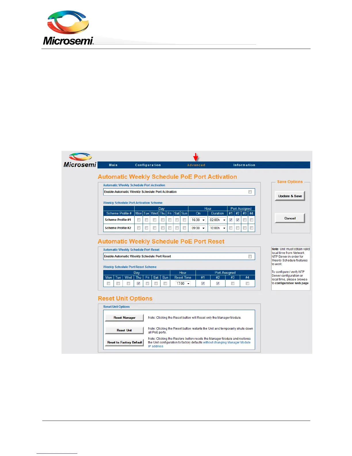 3.4.1 Advanced Web Page – Automatic Weekly Schedule PoE Port Activation