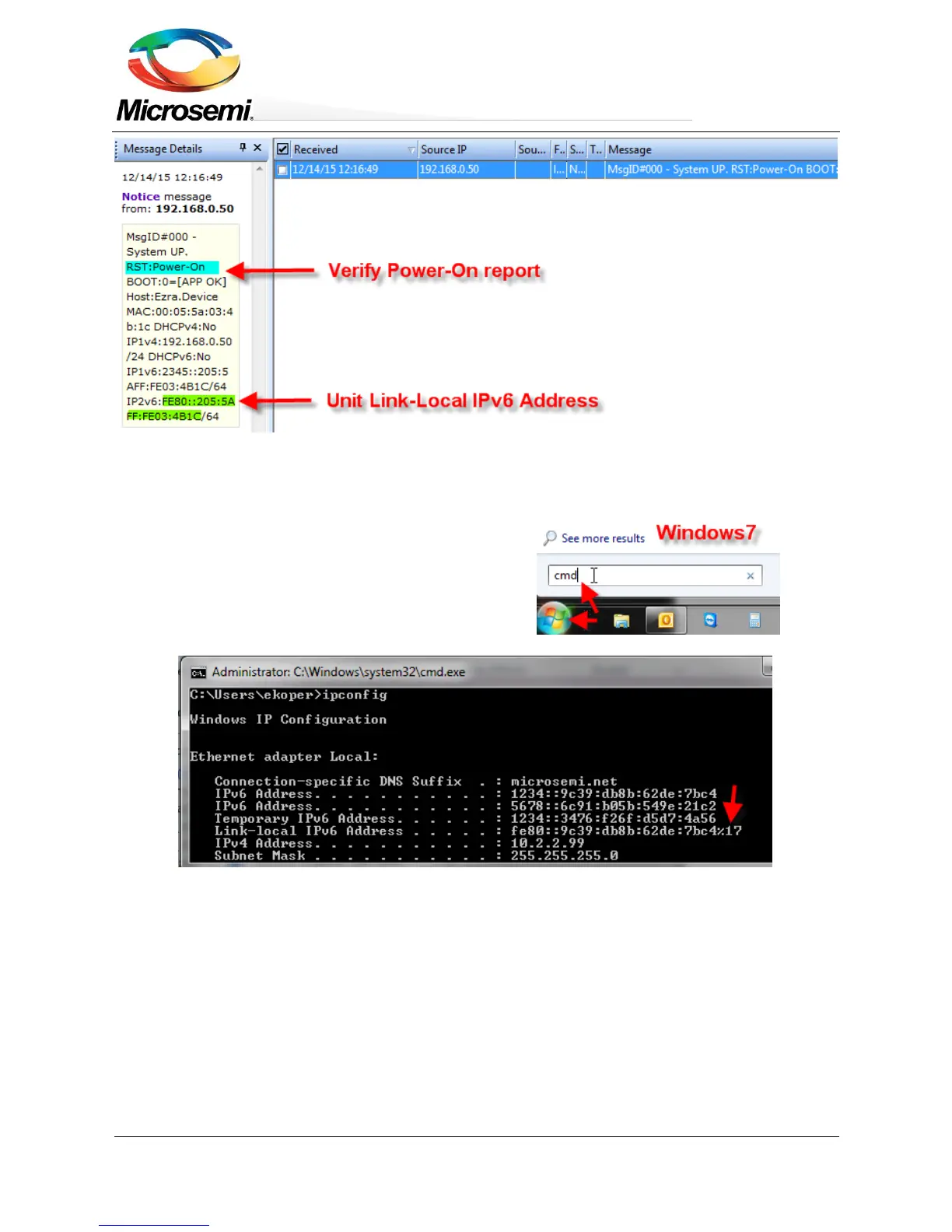 Figure 9-2: Find Unit IPv6 Link Local address from Power-Up SysLog Report