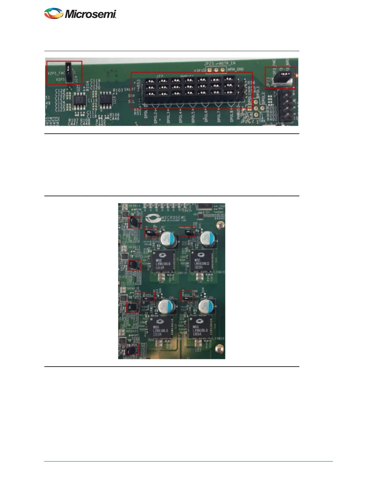 JP23 should have pins 1 and 2 jumpered and J24 should be jumpered to provide 3.3 V and 2.5 V supplies to the SF2-