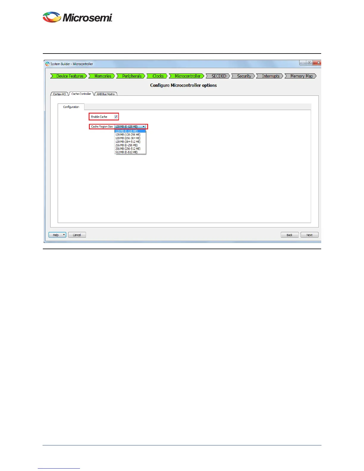 Figure 7 • Cache Controller Configuration Through System Builder in Libero