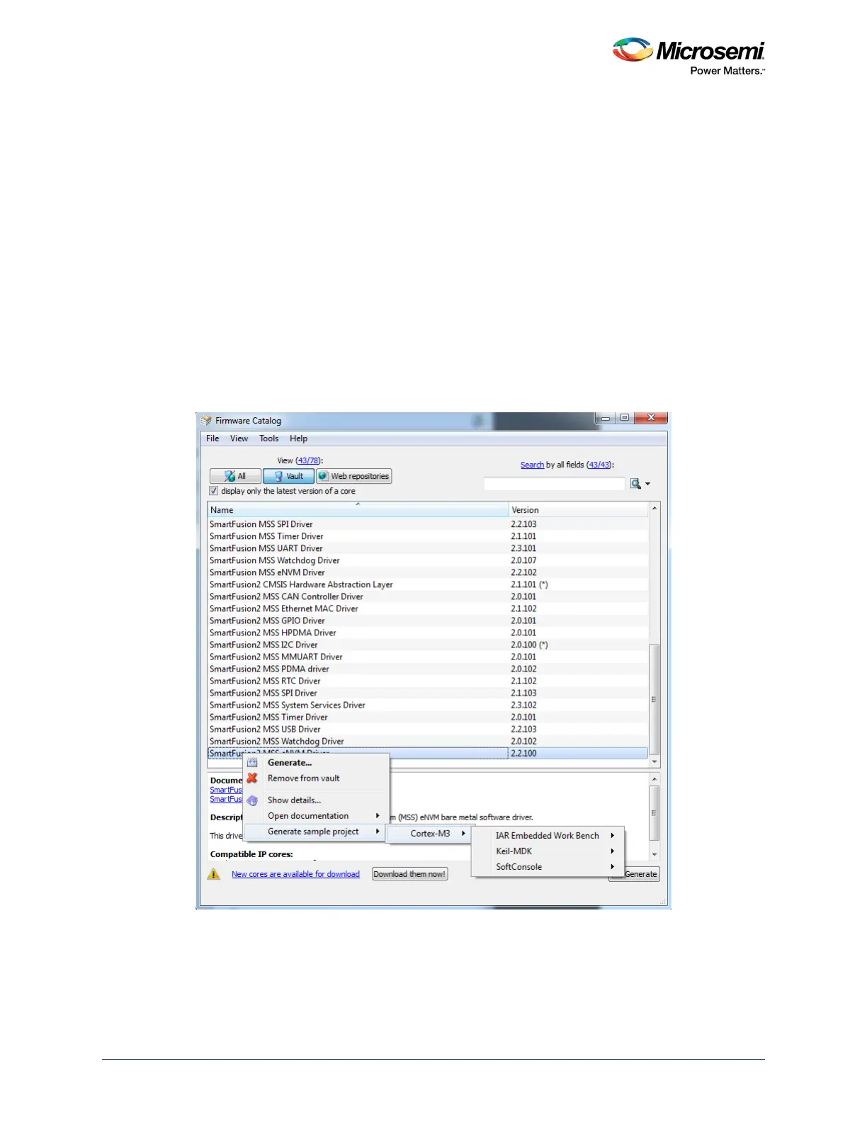 Figure 94 • Firmware Catalog Showing the Generation of Sample Project for eNVM