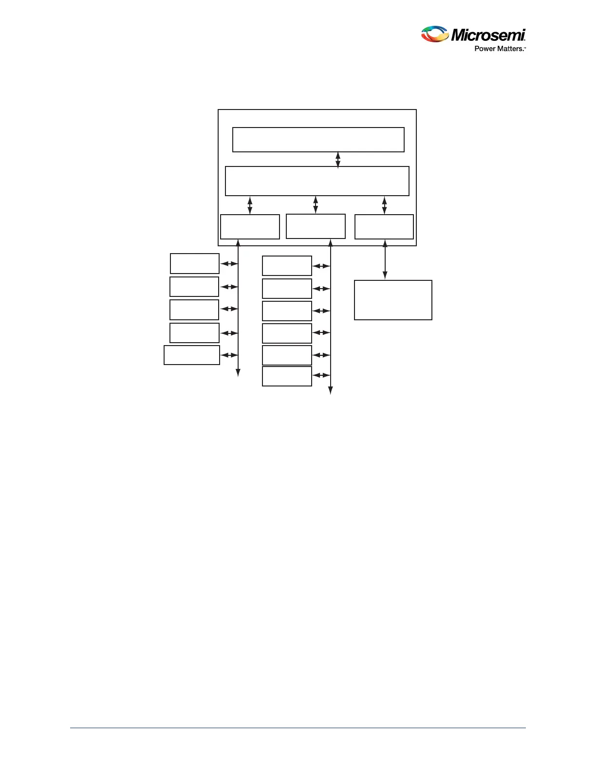 using the AHB-to-AHB bridge. The MSS APB peripherals are connected through the AHB to APB bus.