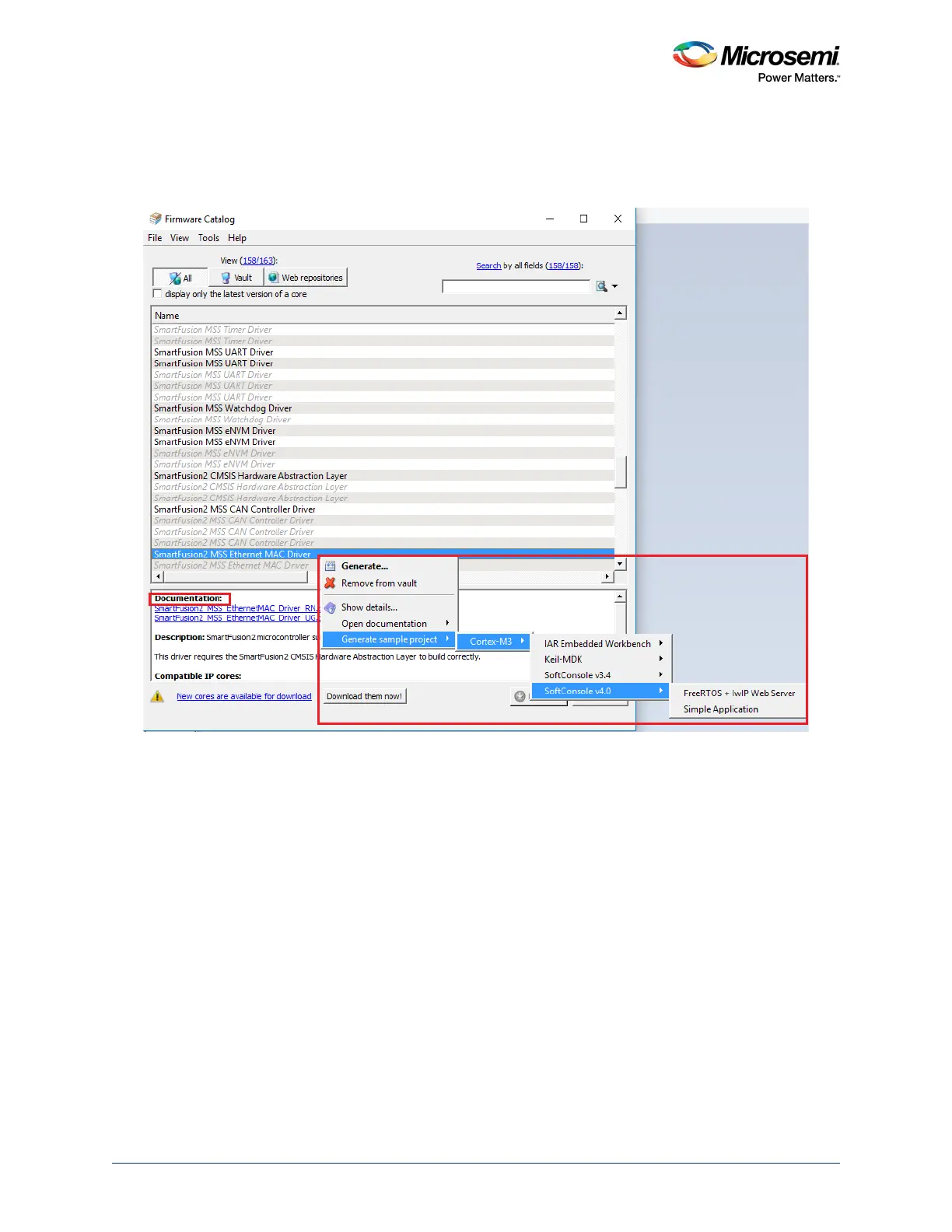 Figure 163 • Firmware Catalog Showing the Generation of Sample Project for TSEMAC