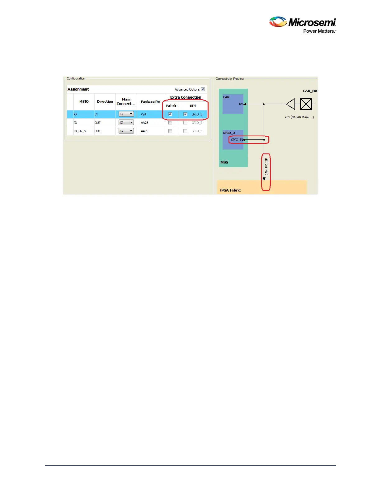 selected. The MSIO RX input can also be routed to the GPIO and fabric, as shown in the following figure.
