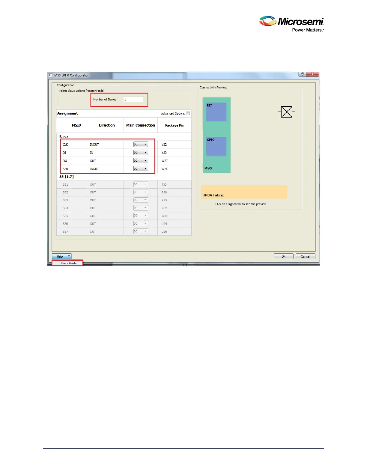 using MSS SPI_0 Configurator as shown in the following figures. Click the highlighted Users Guide