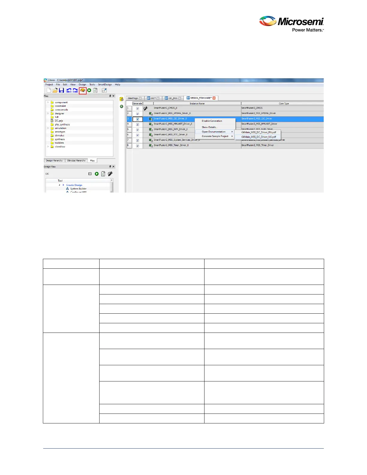 6. Double-click Export Firmware under Handoff Design for Firmware Development in the Libero