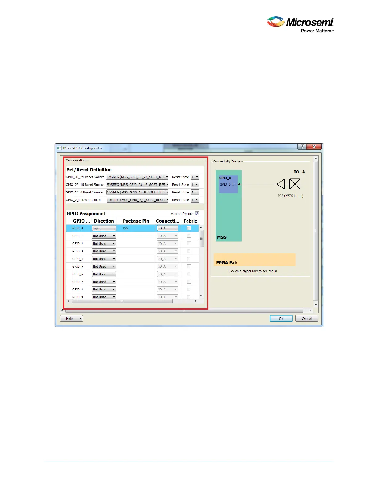 Double-click GPIO or right-click, GPIO and select the configure option to program the GPIOs.