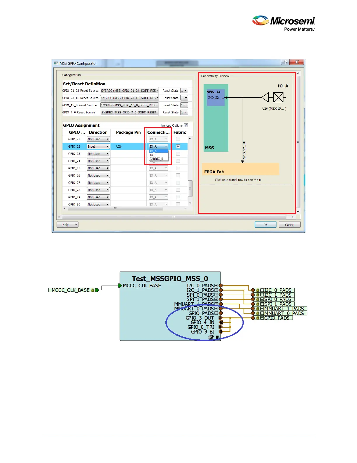 The following figure shows a graphical view of the current connections for the highlighted GPIO signal.