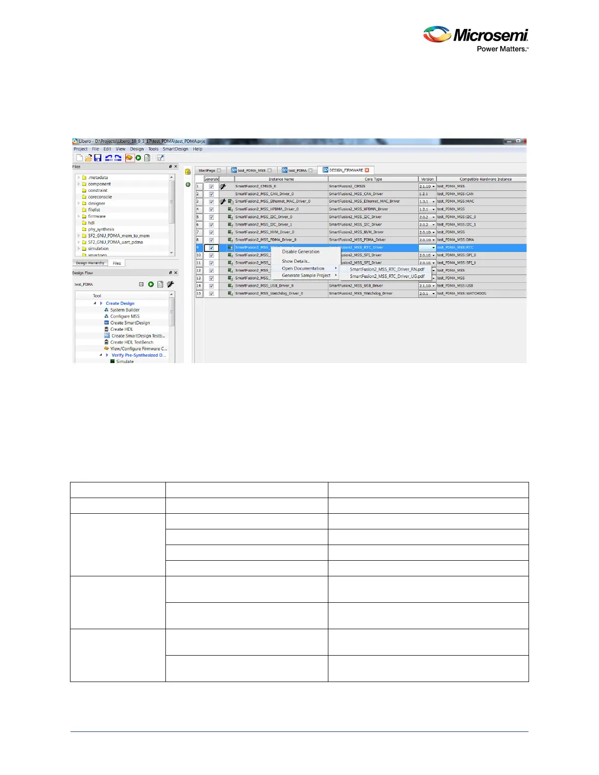 6. Double-click Export Firmware under Handoff Design for Firmware Development in the Libero