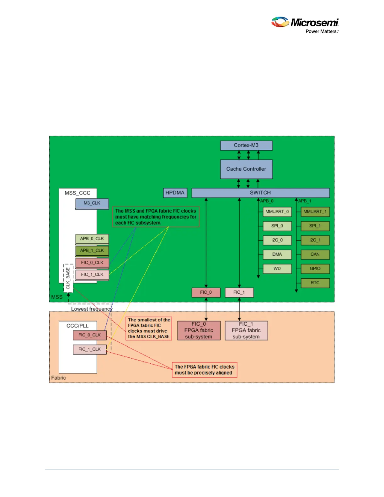 • Each FPGA fabric FIC subsystem must be driven by a clock whose frequency matches the