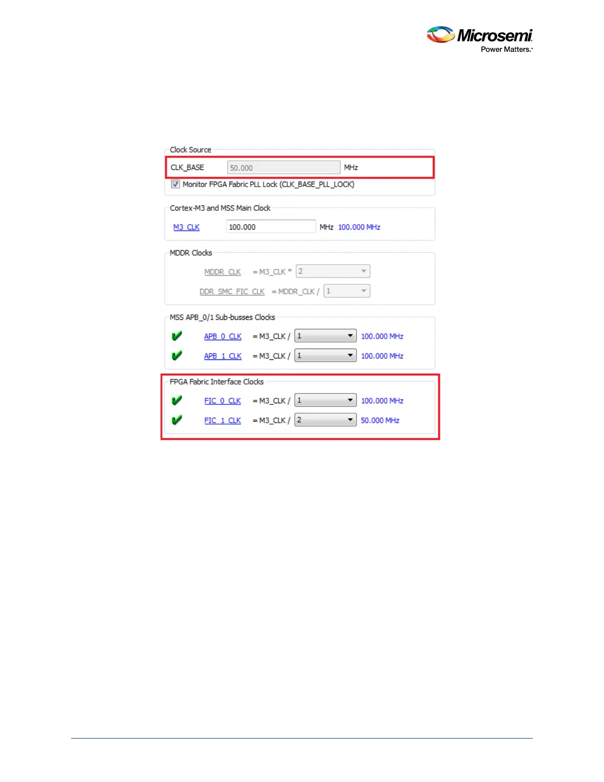 Note that the CLK_BASE field is non-editable. CLK_BASE frequency, as imposed by the SmartFusion2