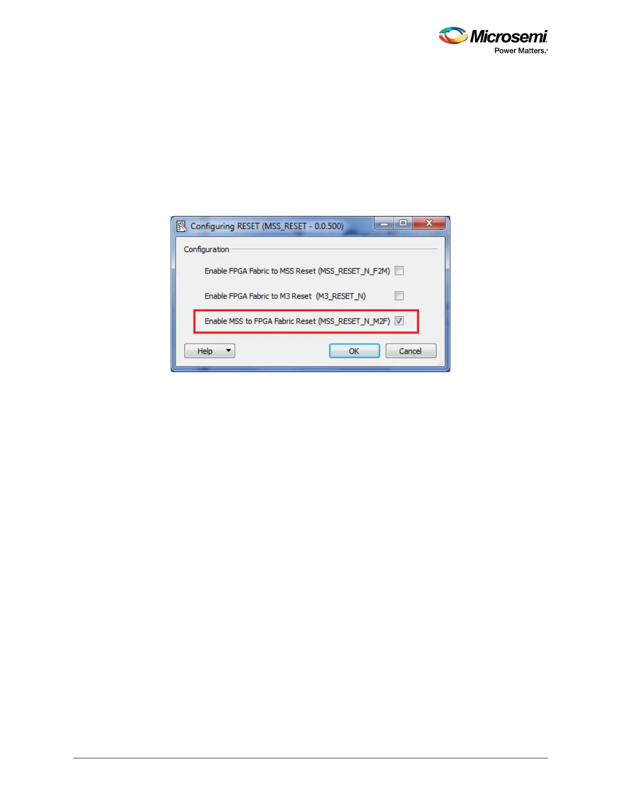 1. Configure the MSS Reset sub-block to expose the MSS_RESET_N_M2F port, as shown in the