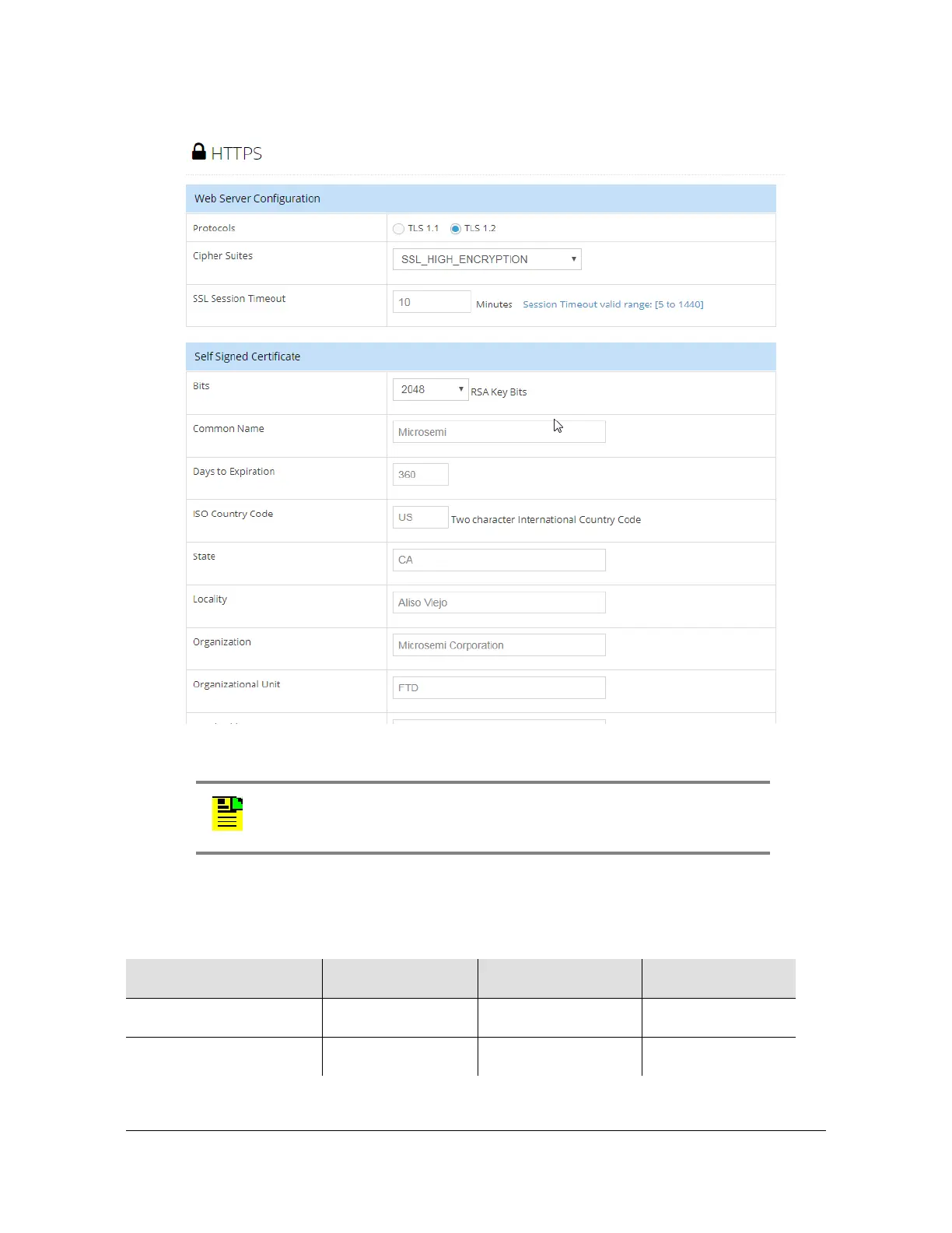Microsemi SyncServer S600 - Security - HTTPS Configuration Window; Supported HTTPS Protocols