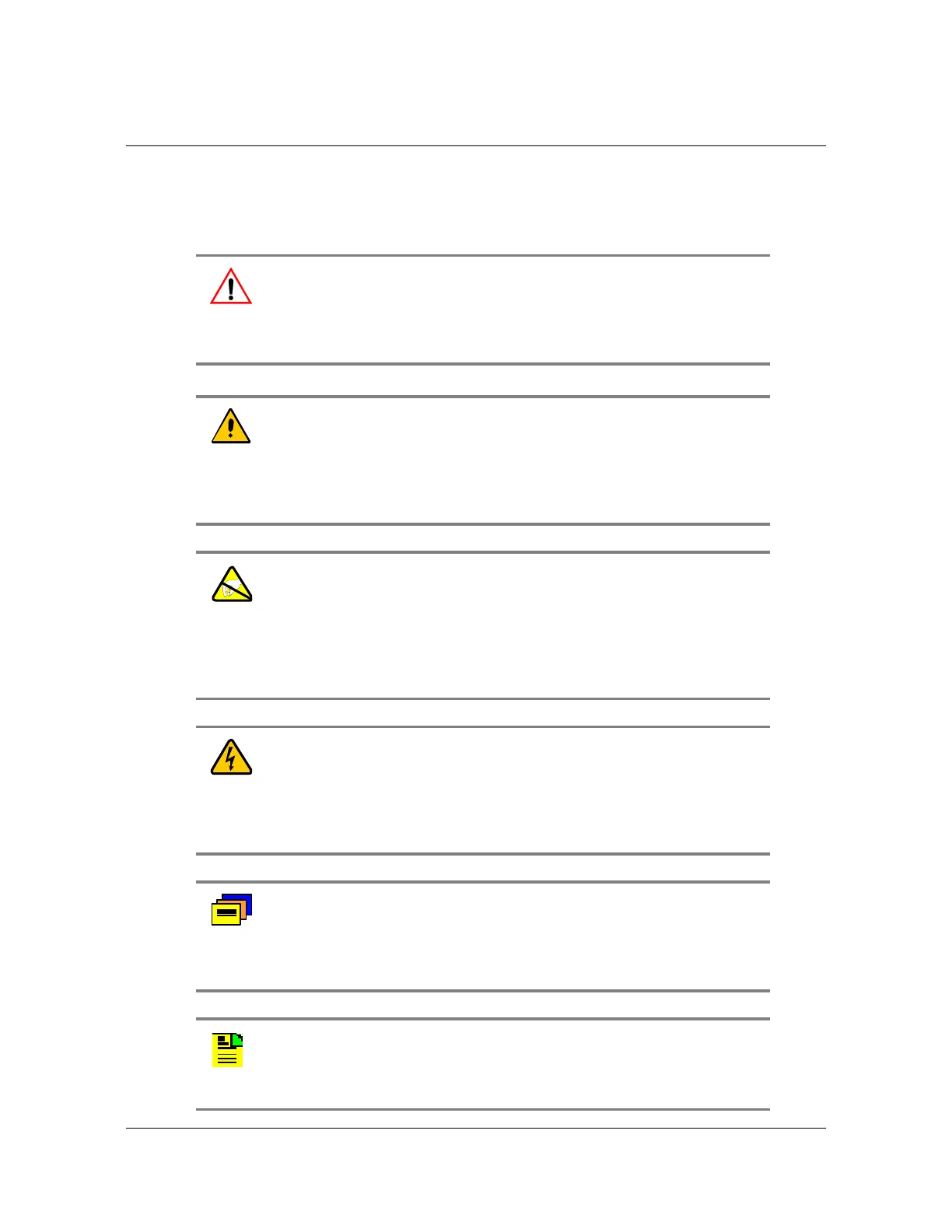 Warnings, Cautions, Recommendations, and Notes attract attention to essential or