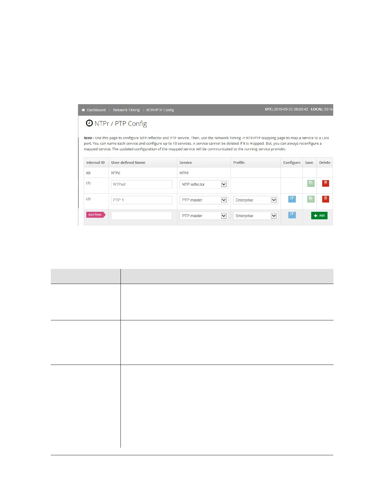 Use this window to configure NTP reflector and PTP services. See Figure 4-22.