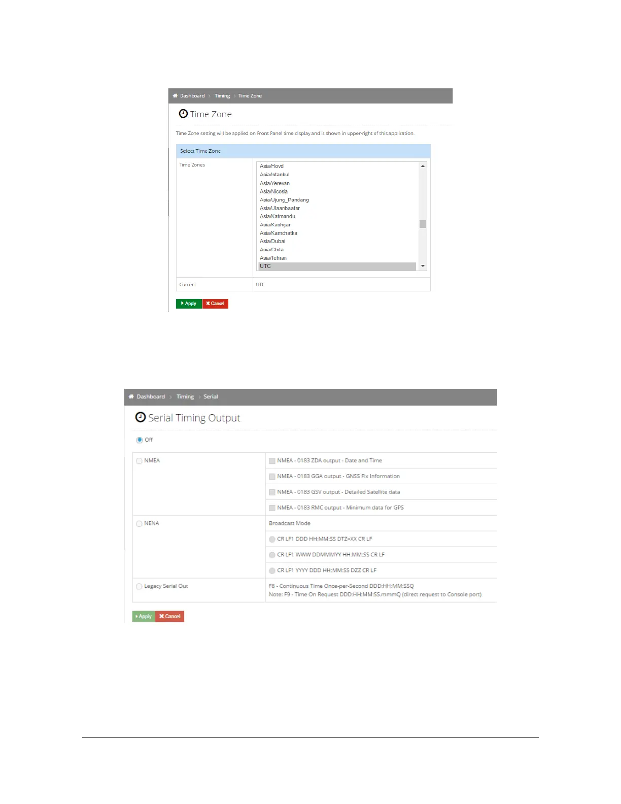 This window is used to select the format for the serial timing output for the