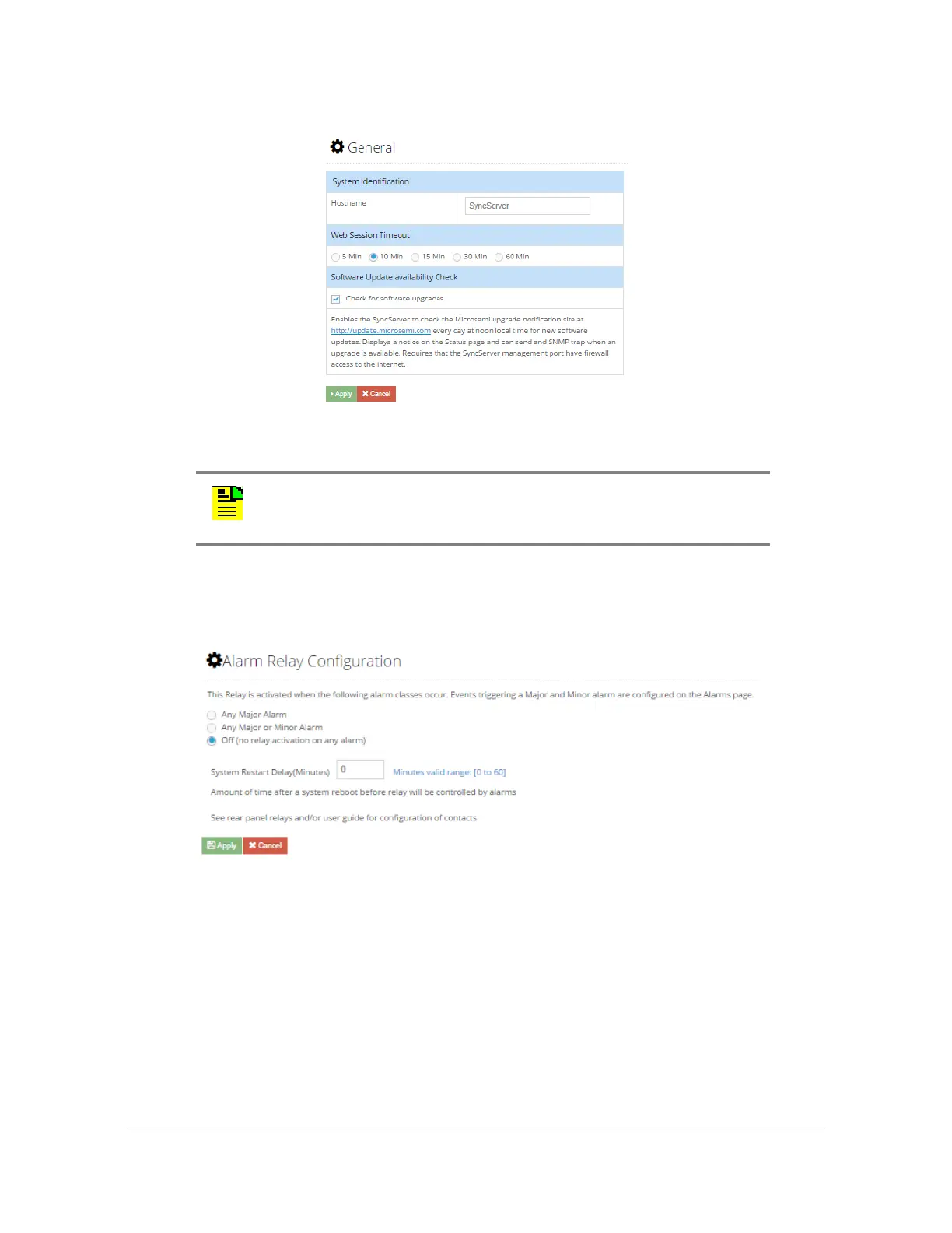 Microsemi SyncServer S650 - Admin - Alarm Relay Configuration Window; Admin - Alarm Configuration Window