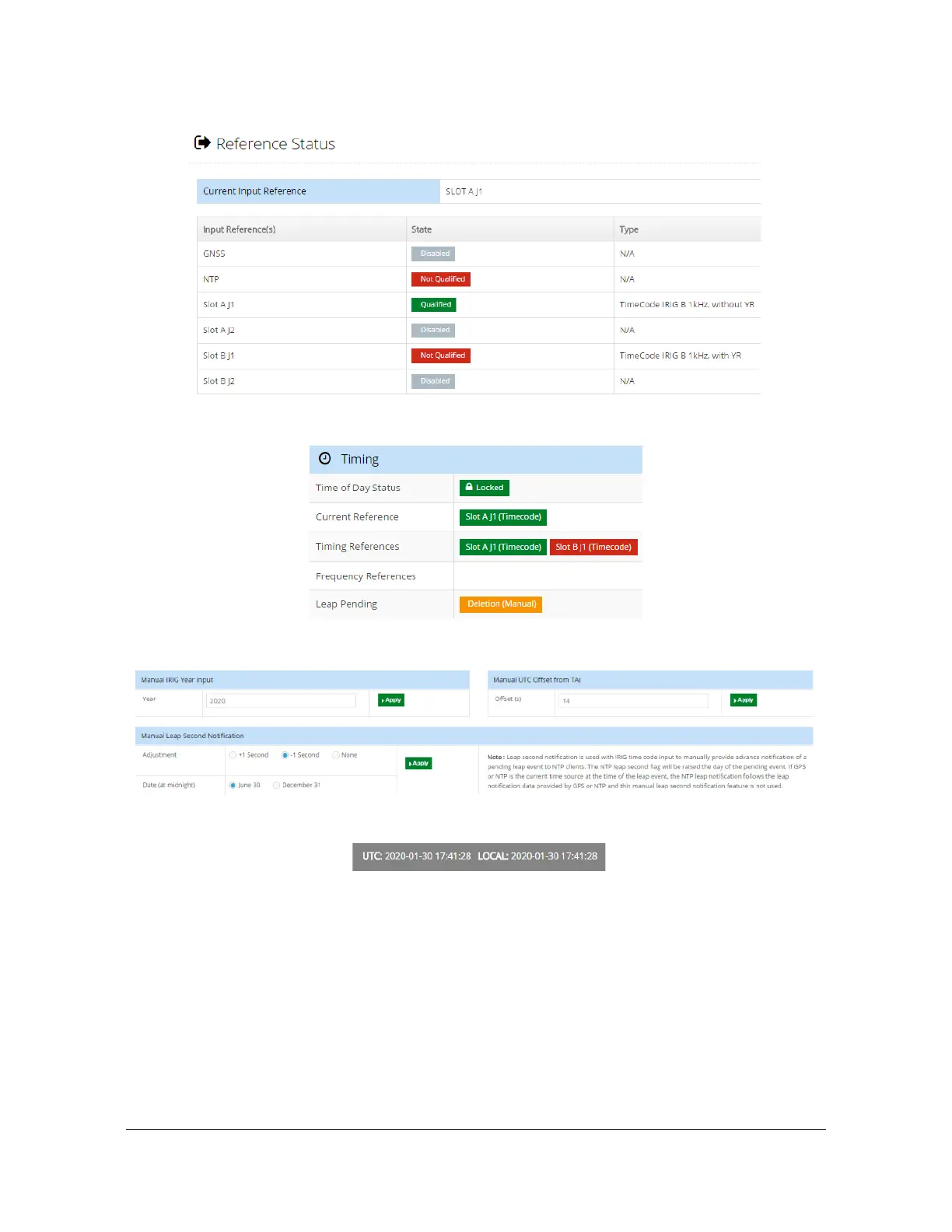 Microsemi SyncServer S650 - Time-Related Information Is Extracted from All Qualified Inputs; The Qualified (and Selected) Input Does Not Provide Year; Example Showing User-Entry of All Manual Inputs; Manually Entered Year Is Being Used