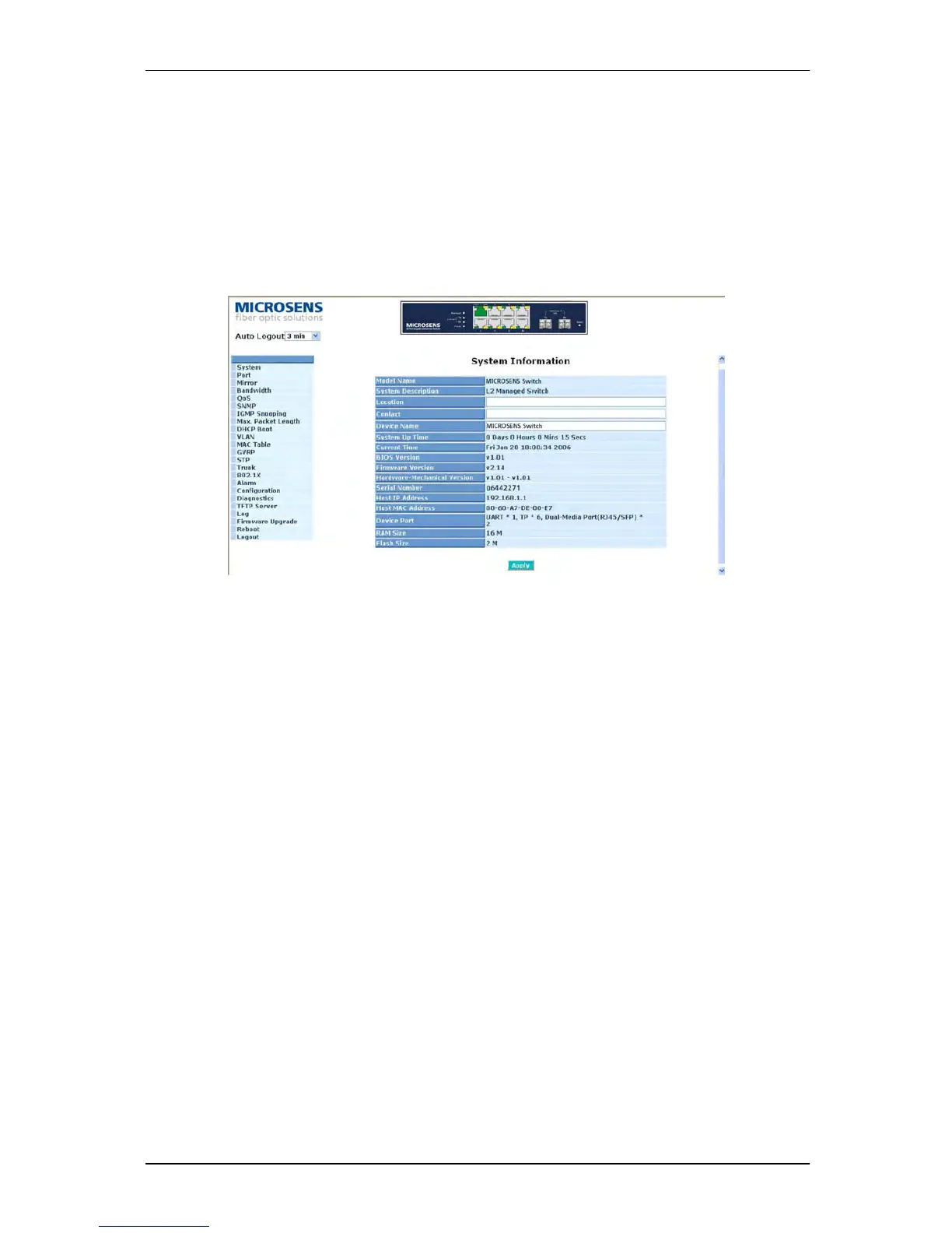 After you login, the switch shows you the system information as Fig. 3-2. This page is