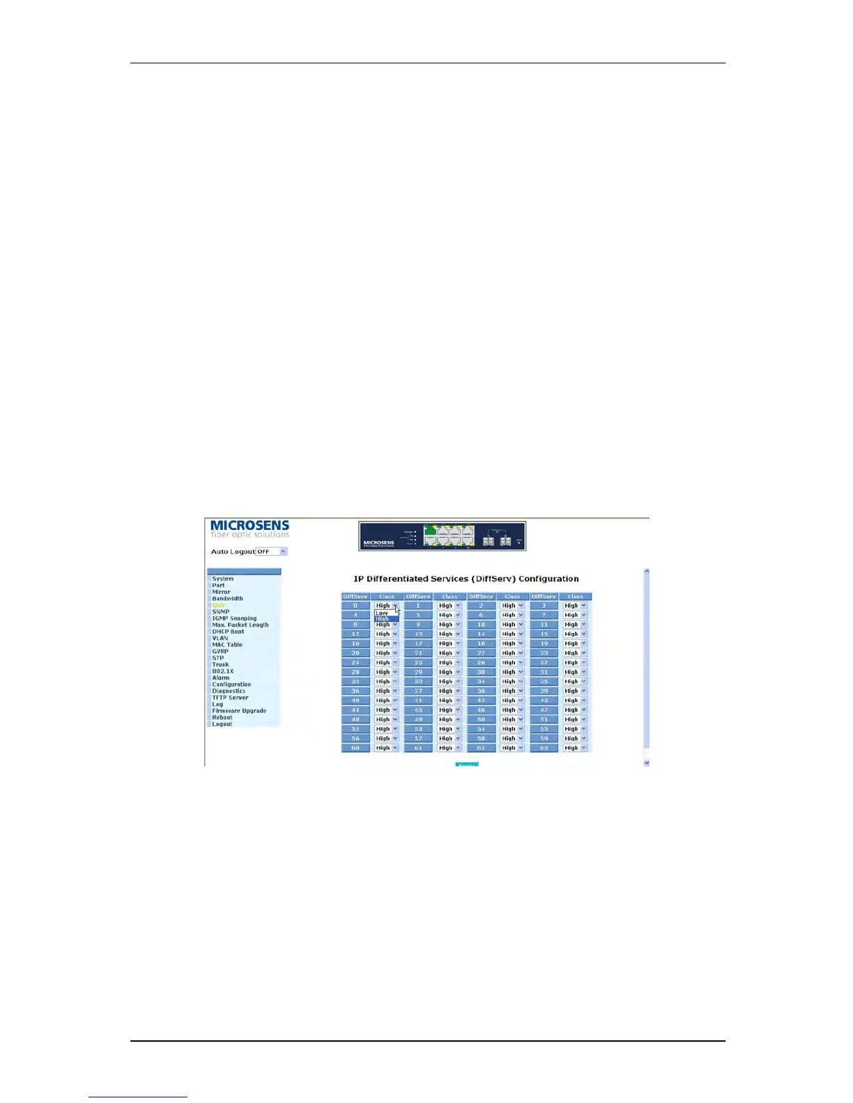 Display 64 (0~63) DiffServ Priority items.