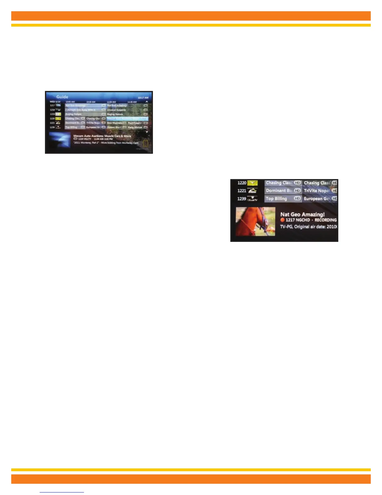 Quick tip: To view a list of all programs on a channel, use (LEFT ARROW) to highlight the channel logo and number and press (OK)