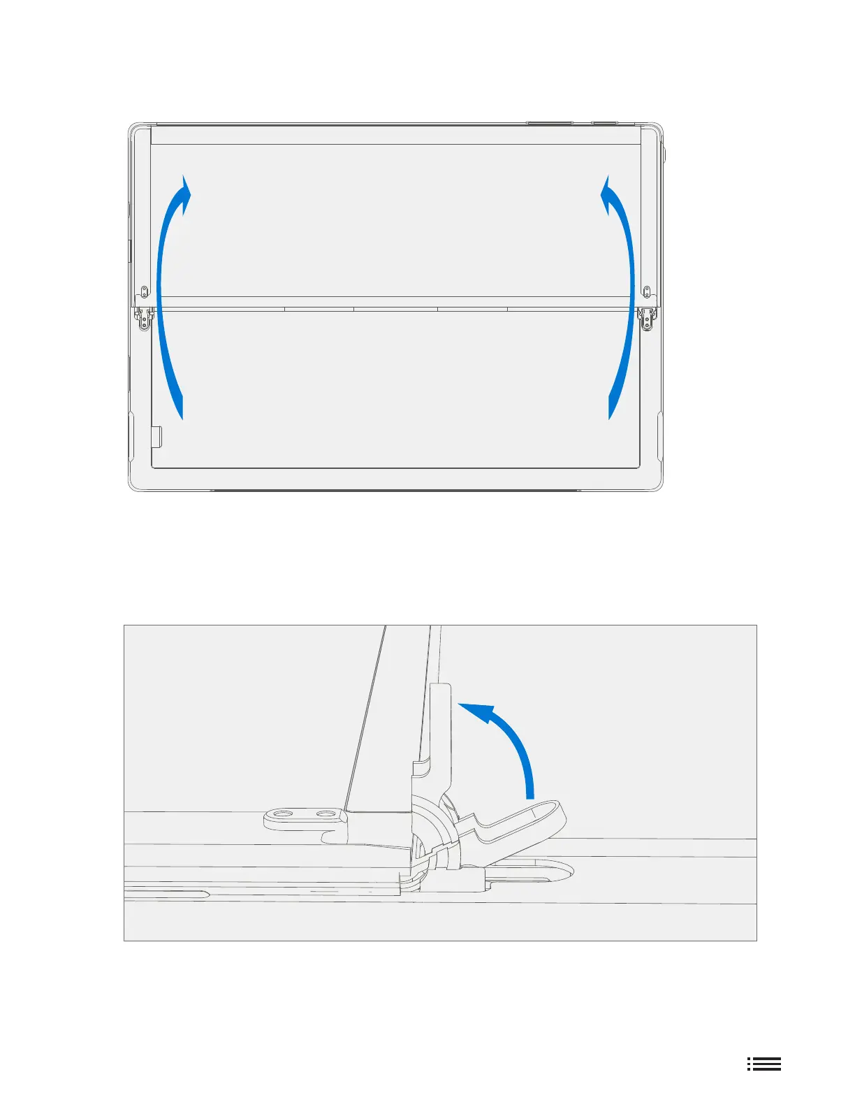 3. Angle hinges Up – Using your thumb or index nger, push both hinges up from 30° to approximately 90°.